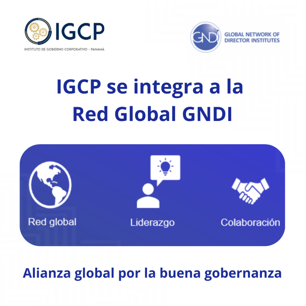 El Instituto de Gobierno Corporativo Panama (IGCP) informa su incorporación como miembro del Global Network of Director Institutes (GNDI), una red internacional sin fines de lucro que agrupa a más de 25 organizaciones profesionales de directores, representando a más de 180,000 líderes corporativos en todo el mundo. Esta integración posiciona al IGCP dentro de una […]