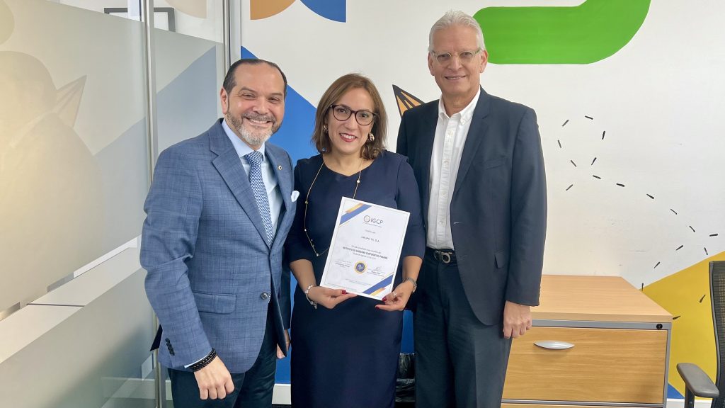 En un encuentro institucional, el presidente del Instituto de Gobierno Corporativo Panamá (IGCP), Temístocles Rosas, acompañado por el presidente del Comité Congreso 2025, Iván Agustín Araúz Ramos y la directora adjunta a Presidencia, Eloína Díaz, hizo entrega del certificado de acreditación a Grupo TX, que se incorpora como nuevo asociado corporativo del Instituto. El documento […]