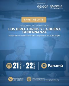 El Instituto de Gobierno Corporativo de Panamá (IGCP), en alianza con ASCLA, anuncia la realización de este encuentro especializado que pondrá en perspectiva la transformación del rol del Secretario Corporativo frente a los desafíos de la digitalización, la automatización de procesos y la creciente complejidad regulatoria.