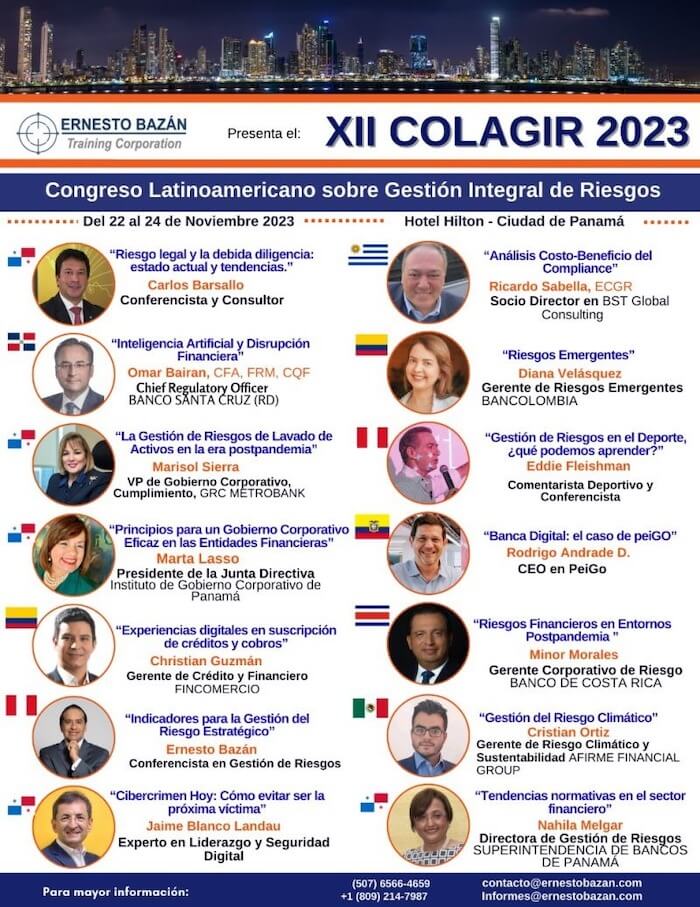 23 de noviembre. Tuvimos el agrado de participar en el realiXII Congreso Latinoamericano sobre Gestión Integral de Riesgoszado entre el 22 al 24 de noviembre de 2023 en el Hotel Hilton. En dicho evento destacó la participando de miembros del IGCP que fueron invitados como expositores, Marta Cristina Lasso, Presidente del IGCP, Marisol Sierra, VP del IGCP y Carlos Barsallo, Ex – Presidente IGCP.
